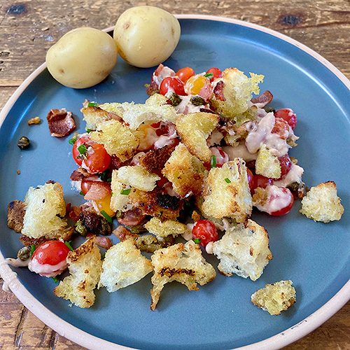 Meanwhile melt the butter in a large pan, add the bacon and cook over a medium heat, stirring occasionally for 4-5 minutes or until the bacon is coloured. Stir in the flour and cook for 1 minute.